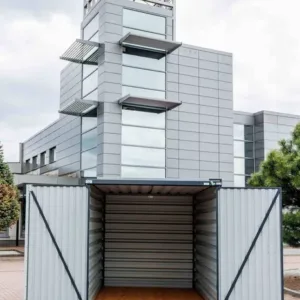 Drzwi: wykonane z blachy trapezowej T-35, wyposażone w klamkę, zamek, nóżkę oraz rygiel. Zawiasy toczone